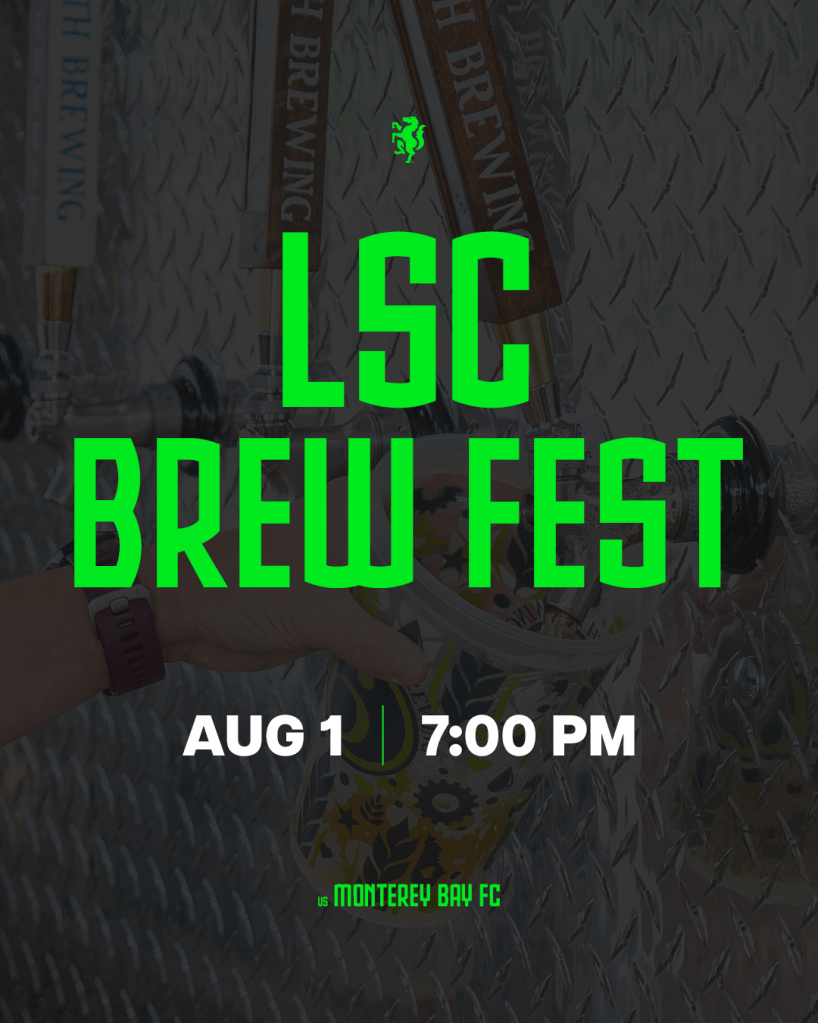 Raise a glass at LSC Brewfest! Your matchday starts with a pre-match tasting experience featuring a lineup of craft brews before taking the party into the stands to cheer on LSC with a cold one (or two) in hand.