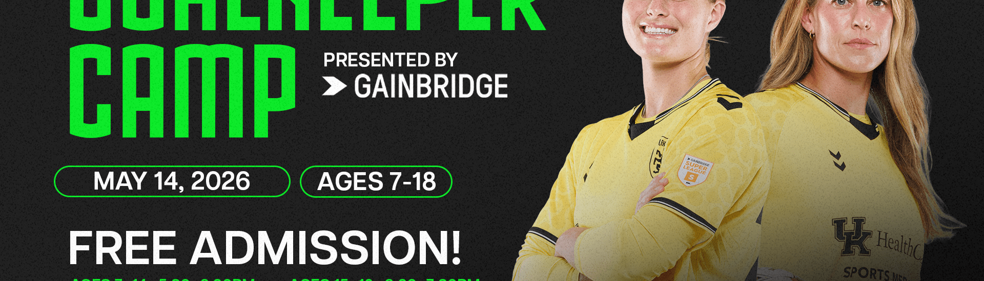 On May 14, 2026, LSC will host a free goalkeeper camp at Lexington Sporting Club Indoor 1 for athletes ages 7-18, presented by Gainbridge.